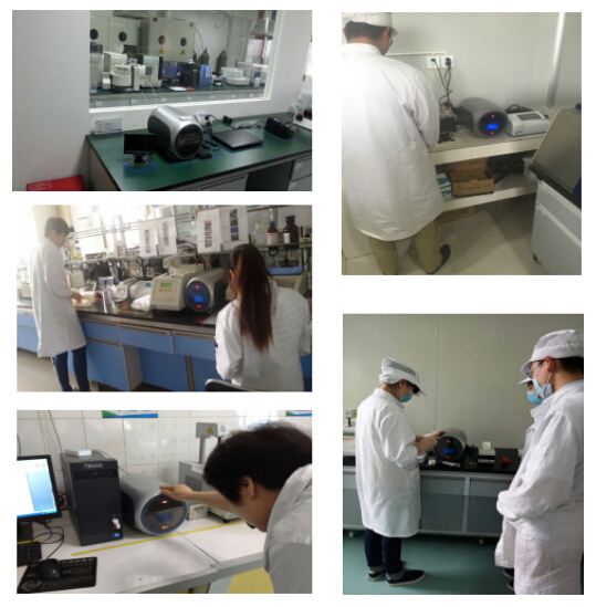 上图为新希望检测技术人员使用牛博士第三代体细胞全自动检测设备的现场图