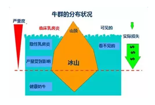 现在很多兽医每天的工作主要是关注临床乳房炎的情况,因为是可以发现的,平时也会花很多精力预防和******临床乳房炎。其实临床乳房炎造成的损失只是冰山一角,更多的经济利益损失与隐性乳房炎相关,是看不到的一部分。现在有个不太好的趋势就是大家过于关注临床乳房炎,而忽略了隐性乳房炎。