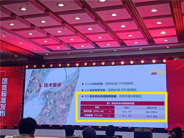 标准中再次将体细胞数作为重点指标进行了修订,指标提升为30万个/ml,优于欧盟标准。菌落总数为10万个/ml。