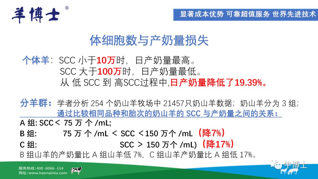 体细胞准确反映羊群健康程度,从而反映牧场的科学养殖水平,是牧场科学养殖和管理水平的标志性指标。无法通过掺假等手段进行改变,不像蛋白质、*********等指标可以人为造假,而体细胞必须从根源上改善牧场养殖和管理水平才能得以提升。大罐样SCC反映奶羊乳房炎发病率和羊群健康状况,个体奶样的SCC反映奶羊乳房炎的感染程度。