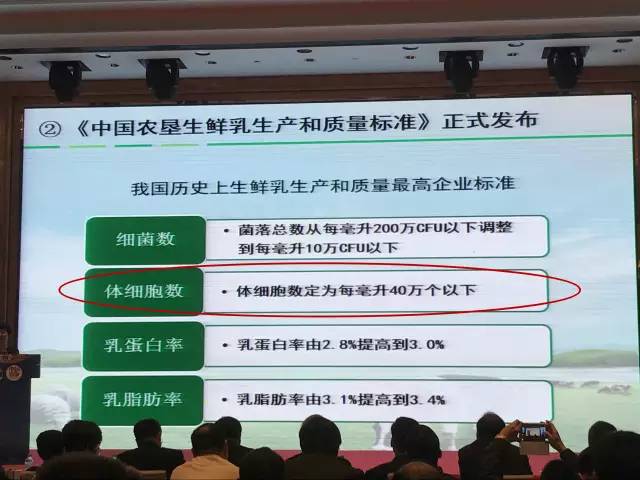 报告中,他指出,目前,《中国农垦生鲜乳生产和质量标准》中将体细胞数首次纳入标准,并定为每毫升40万个以下,体现了国家部门及政策对体细胞数的高度重视。希望乳品企业通过重视体细胞数的管控保证生鲜乳的质量,从而为推动农垦乳业联盟乃至中国奶业的发展做出贡献!