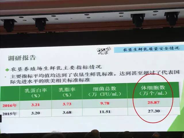 会议期间,中国农垦乳业联盟主席冯艳秋老师、国家奶业科技创新联盟理事长王加启老师分别作了主题为《中国农垦生鲜乳生产和和质量报告》、《中国优质乳工程》的报告,均多次提及并论述了体细胞数对乳业发展和乳品质量的重要性。