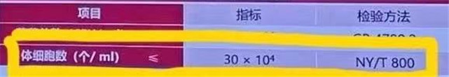 标准中再次将体细胞数作为重点指标进行了修订,指标提升为30万个/ml,优于欧盟标准。菌落总数为10万个/ml。